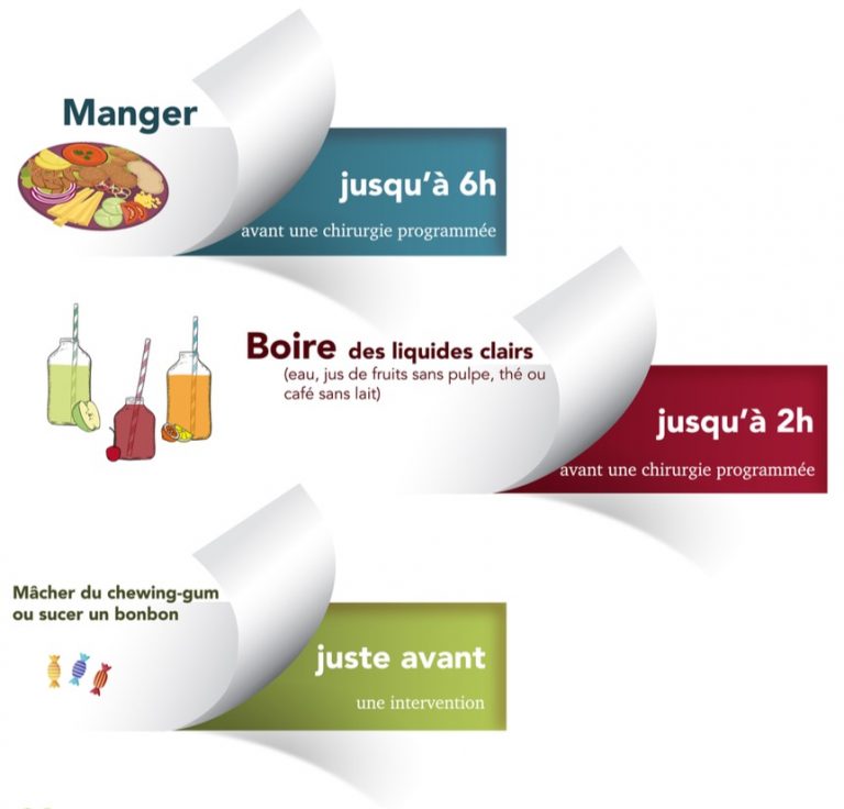 – Après une anesthésie générale, les infections pulmonaires dues à l’aspiration de nourriture sont prévenues par le jeûne préopératoire. Pour empêcher la formation de caillots de sang, un traitement préventif associé à des bas de contention est mis en place.